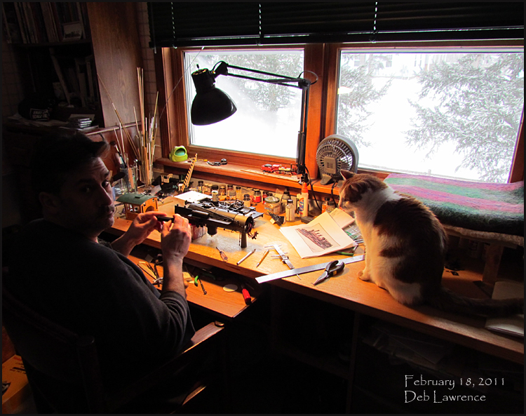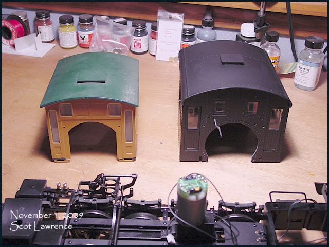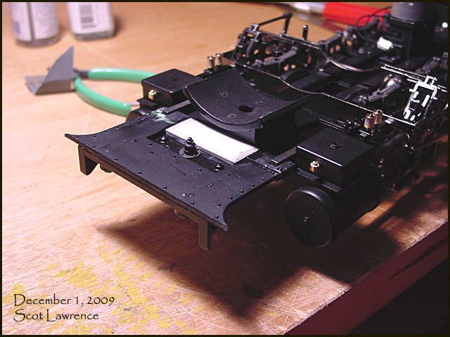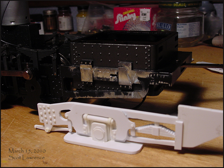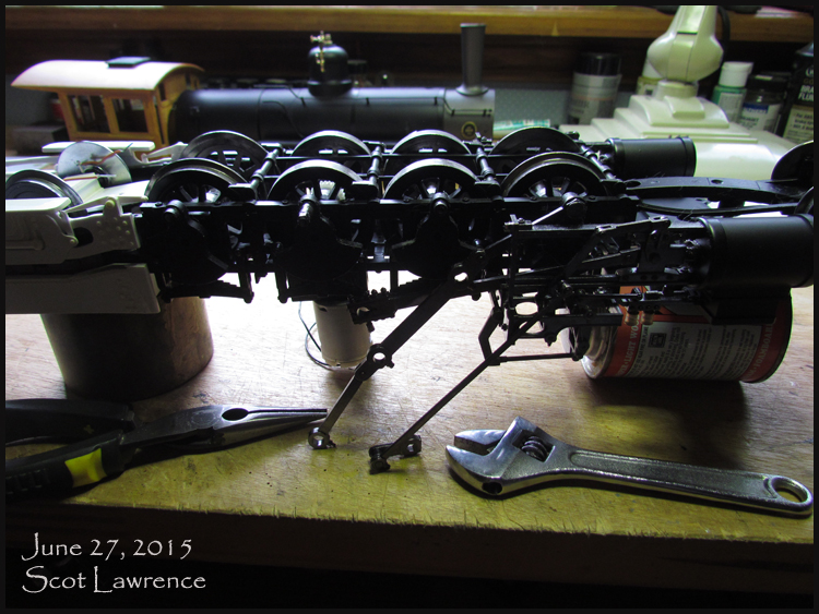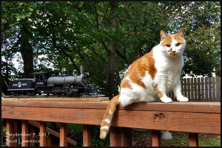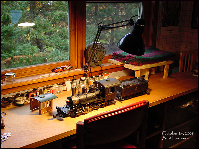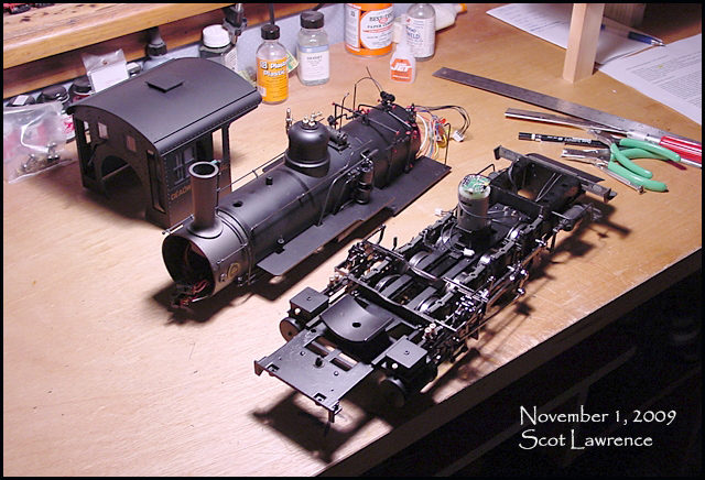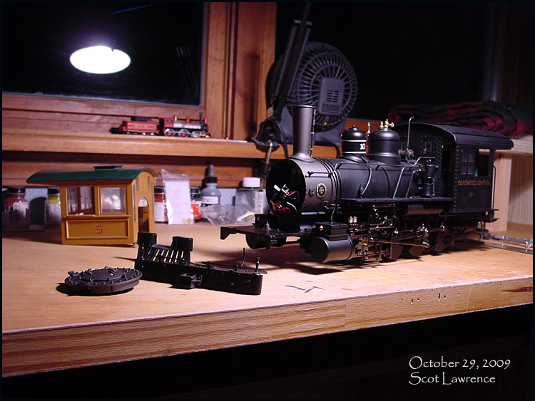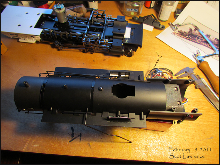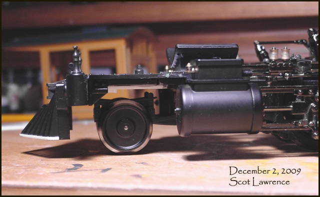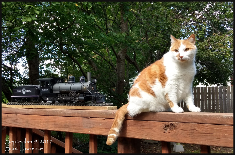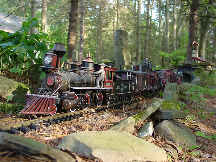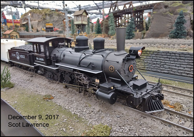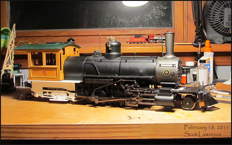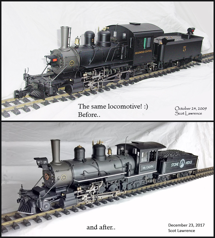 Stonehedge No. 7, named after the Supervisor of the Railroad, Mister Calvin: ![]() ![]() Calvin supervises during some early construction on the railroad: ![]() I must give credit for the origin of this project to David Fletcher, thanks Dave! Here is Dave's creation, turning the "connie" into the "Quick & Dirty K27": ![]() I love the look of that locomotive! Its not a 100% accurate K27, but that doesnt bother me.. Honestly, the Connie "as built" doesnt interest me much at all..I just dont care for the way it looks..And the Full-on K27, with the big slanted K27 cylinders, also doesnt interest me much.(Fletch later modeled the "full-on K27 bash" from the Connie, making it more accurate than the "quick & dirty version) Photo of a real K27. And im also not interested in 1/20.3 scale (Fn3) "Colorado 3-foot gauge" modeling..I doubt I will ever actively model in 1/20.3 scale..(I have never even been to Colorado!) I have enough to last me (probably for life ;) with 1/29 scale diesels and Maine 2-footer modeling.. So im not interested in the Connie "as built", and im also not at all interested in modeling an actual K27..but! something about Fletch's "Quick & Dirty" K27 really "spoke" to me! to me, it looks so much better than a real K27! its "sleek and stylish"..I love keeping the original cylinders (as opposed to the later "slanted" big and clunky K27 cylinders. (yes I do know the K27's originally had different cylinders! ;) So as soon I saw the "Quick & Dirty" version back in 2002, I knew I had to build one! (or a similar bash anyway) So finally in September 2009 I was able to pick up a "Connie" for a very good price that I couldnt pass up..and the Connie is perhaps on the verge of being "out of production"..so I picked one up while I still had the chance.. I'm not even going to consider the finished model a "K27" at all..it will simply be "Stonehedge No. 7", a large 2-8-2. Im not even concerned about the exact scale..using the K27 plans and the Bachman Big Hauler wood cab, it scales out to about 1/24 (if it was a K27)..which is fine with me. (I model diesels in 1/29 scale, but the Stonehedge Steam Locomotive fleet isnt really any specific scale! im simply not concerned about it.) Photos of the Locomotive as it arrived, before any mods made..this is the Bachmann Spectrum outside frame 2-8-0 Consolidation, nicknamed "connie" by large scale modelers: ![]()