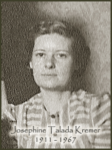 b. 19 Feb 1911 d. 13 Feb 1967 Married Edwin KREMER (Edwin "Polly" KREMER and Josephine are my mothers parents, my Grandparents ) Both are buried at Tioga Point Cemetery, Athens, PA then my Mother, Carol KREMER was born to Josephine TALADA and Edwin KREMER, and that concludes the TALLADAY - TALADA line straight down to me. and apart from me, the line continues to grow and multiply! a very robust family are those TALADA's..
